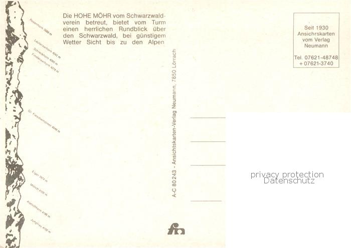 73785583 Hohe Moehr Schopfheim Schweizer Zentralalpen u. Hohe Moehr postalisch nicht gelaufen Erhaltung siehe scans [LiesaD40] Lies Katcode 11110008336081