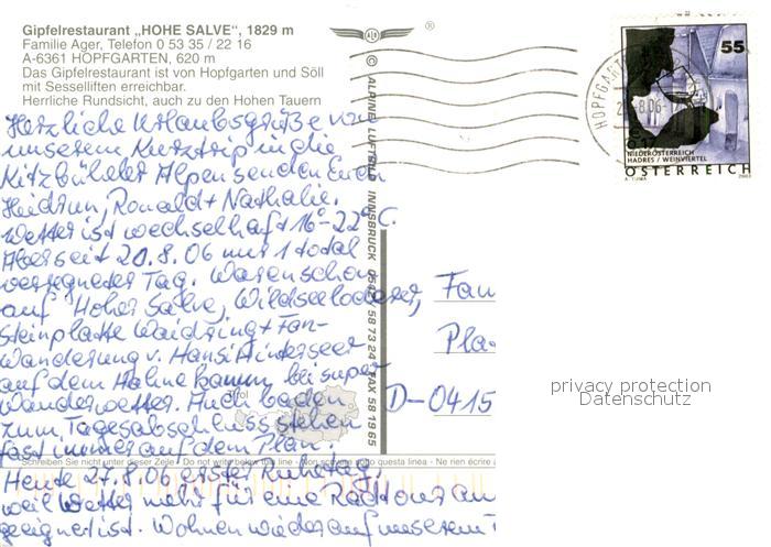 73046804 alte Postkarte Hohe Salve Alpenpanorama postalisch gelaufen Erhaltung siehe scans [KathaD81] KatCode: 11390335070406