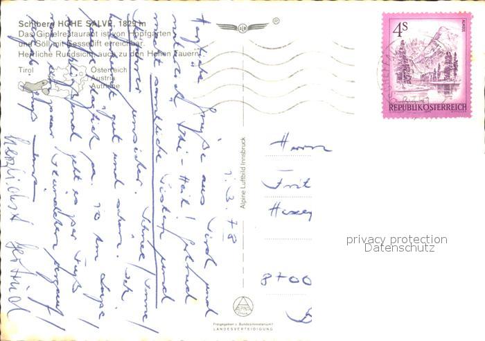 72257034 alte Postkarte Hohe Salve Schizentrum Gipfelrestaurant Alpenpanorama Fliegeraufnahme postalisch gelaufen Erhaltung siehe scans KatCode: 11390335070406