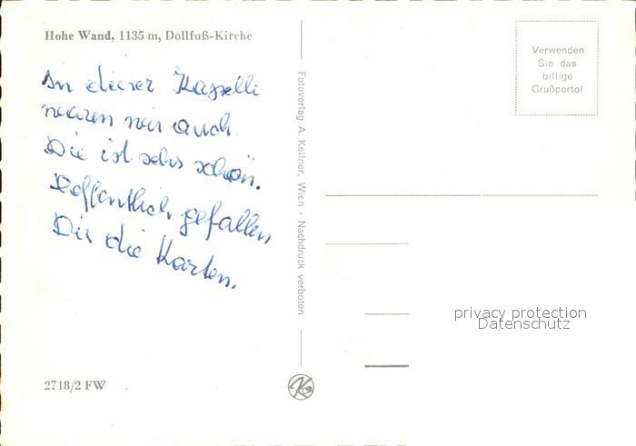 72071851 Hohe Wand Dollfuss Kirche postalisch nicht gelaufen Erhaltung siehe scans KatCode: 11390122032311