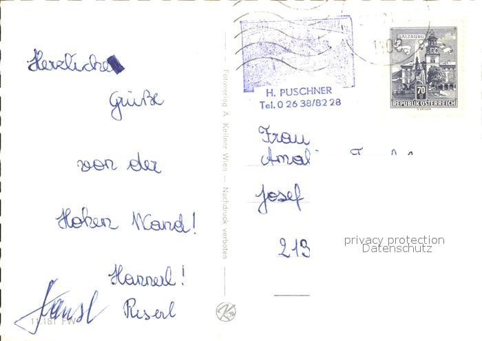 72230661 alte Postkarte Hohe Wand Hohe Wand-Herrgottschnitzerhaus postalisch gelaufen Erhaltung siehe scans KatCode: 11390122032311