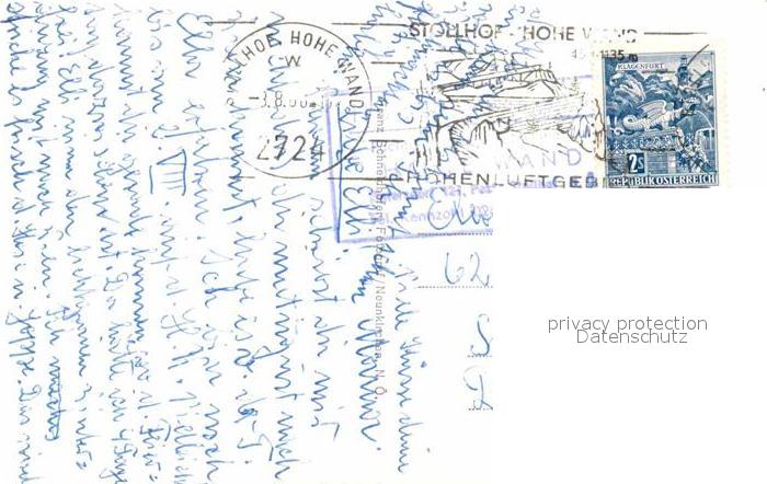 72770209 alte Postkarte Hohe Wand Panorama Ausblick gegen Schneeberg postalisch gelaufen Erhaltung siehe scans [FriedD77] KatCode: 11390122032311