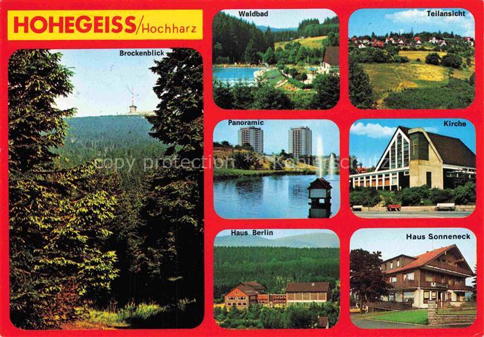 74099830 Hohegeiss Braunlage Harz Niedersachsen Brockenblick Waldbad Teilansicht Panoramic Kirche Haus Berlin Haus Sonneneck postalisch gelaufen Erhaltung siehe scans [WerneD78] alte Postkarte Wern Katcode 11110003153003