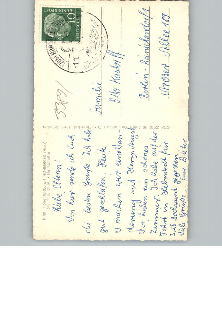 31167787 Hohegeiss Harz postalisch nicht gelaufen KatCode: 11110003153003