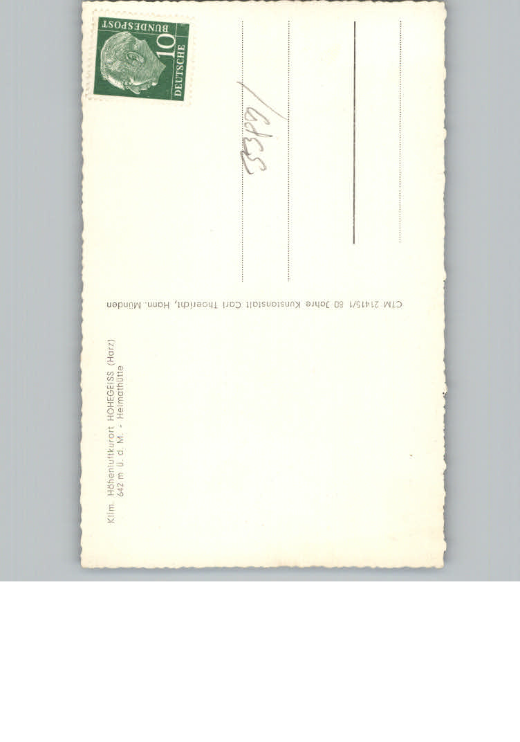 31167786 Hohegeiss Harz postalisch nicht gelaufen KatCode: 11110003153003