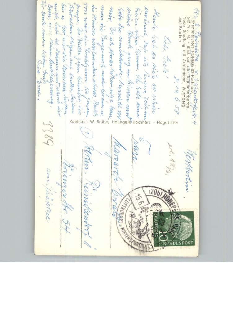31174308 Hohegeiss Harz postalisch nicht gelaufen KatCode: 11110003153003
