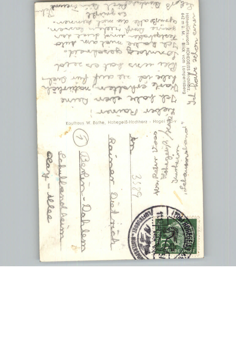31174300 Hohegeiss Harz postalisch nicht gelaufen KatCode: 11110003153003