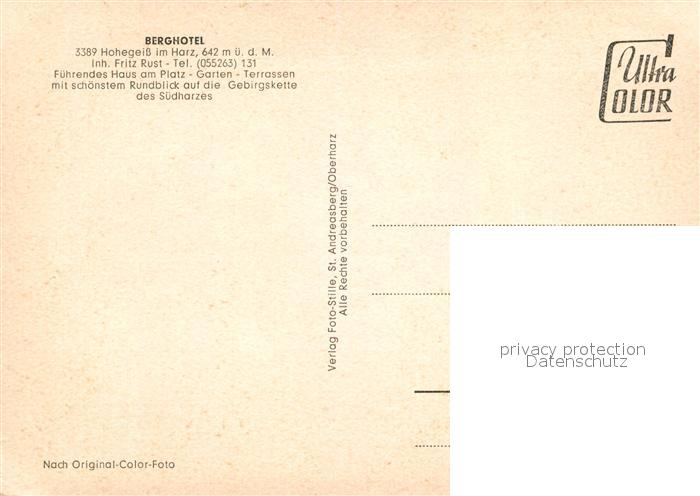 73128423 Hohegeiss Harz Berghotel postalisch nicht gelaufen Erhaltung siehe scans [NatalD47] KatCode: 11110003153003
