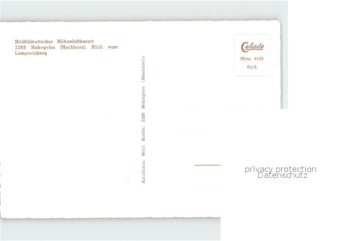 72202803 Hohegeiss Harz Blick vom Lampertsberg Hoehenluftkurort postalisch nicht gelaufen Erhaltung siehe scans KatCode: 11110003153003