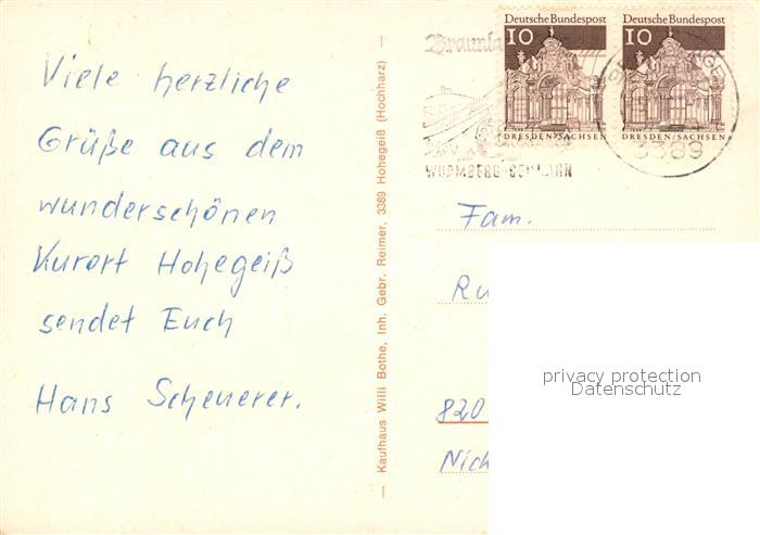 73129406 alte Postkarte Hohegeiss Harz Bundesbahn-Kurheim Waldbad Springbrunnen postalisch gelaufen Erhaltung siehe scans [PaolaD17] KatCode: 11110003153003