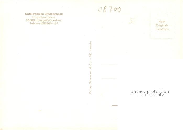 73569887 Hohegeiss Harz Cafe Pension Brockenblick postalisch nicht gelaufen Erhaltung siehe scans [WerneD78] KatCode: 11110003153003