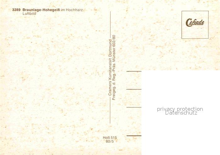 72882922 Hohegeiss Harz Fliegeraufnahme postalisch nicht gelaufen Erhaltung siehe scans [AndreD76] KatCode: 11110003153003