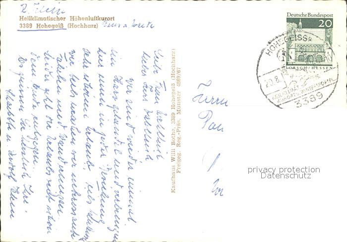 72062438 alte Postkarte Hohegeiss Harz Fliegeraufnahme postalisch gelaufen Erhaltung siehe scans KatCode: 11110003153003