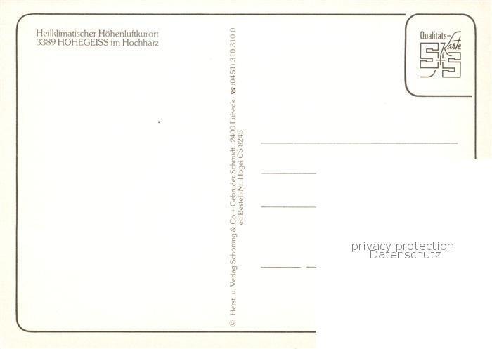 73834498 Hohegeiss Harz Fliegeraufnahme postalisch nicht gelaufen Erhaltung siehe scans [FriedD77] KatCode: 11110003153003