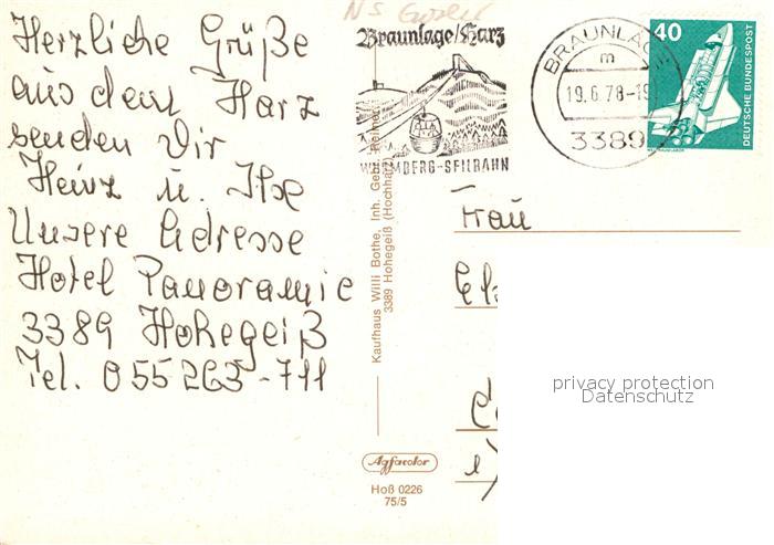 72930804 alte Postkarte Hohegeiss Harz Fliegeraufnahme Horizontalweg Jugendheim-Oldenburg Haus-Ebersberg postalisch gelaufen Erhaltung siehe scans [LiesaD40] KatCode: 11110003153003