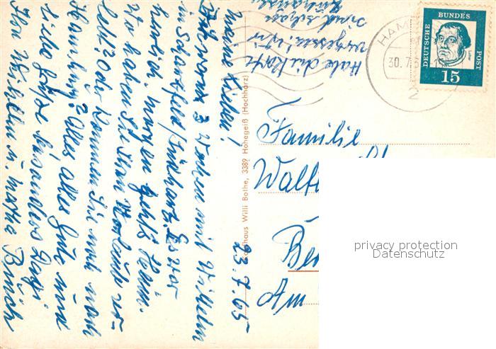 72993813 alte Postkarte Hohegeiss Harz Freizeitheim Gifhorn Waldhotel Dicke Tannen Teilansicht postalisch gelaufen Erhaltung siehe scans [AndreD76] KatCode: 11110003153003