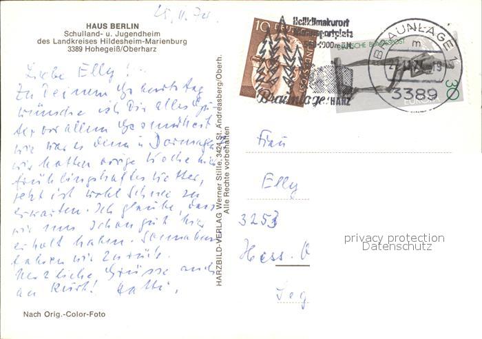 71933073 alte Postkarte Hohegeiss Harz Haus Belin postalisch gelaufen Erhaltung siehe scans KatCode: 11110003153003