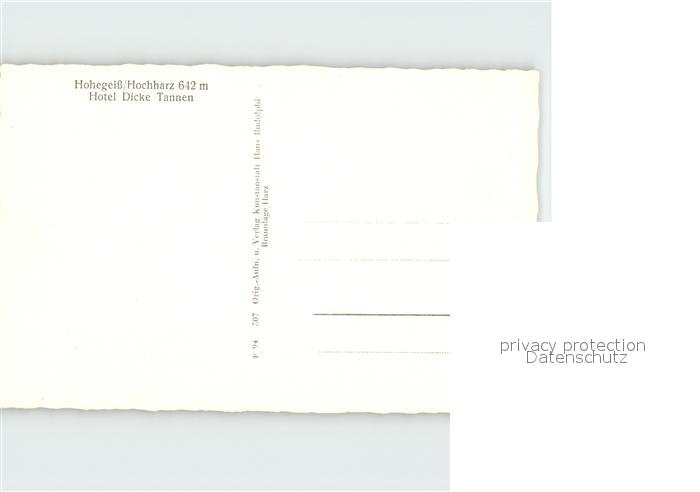 71998364 Hohegeiss Harz Hotel Dicke Tannen postalisch nicht gelaufen Erhaltung siehe scans KatCode: 11110003153003
