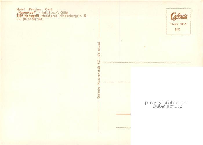 73726366 Hohegeiss Harz Hotel Pension Cafe Hasenkopf postalisch nicht gelaufen Erhaltung siehe scans [FriedD77] KatCode: 11110003153003