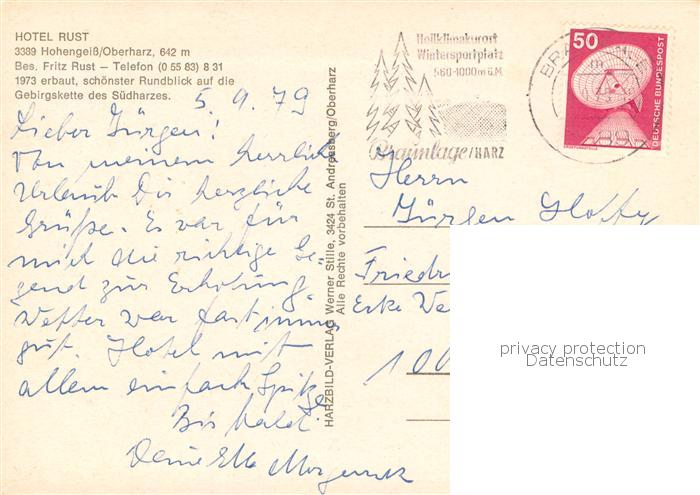 73780470 alte Postkarte Hohegeiss Harz Hotel Rust Gastraum Terrasse Zimmer Hallenbad postalisch gelaufen Erhaltung siehe scans [WerneD78] KatCode: 11110003153003