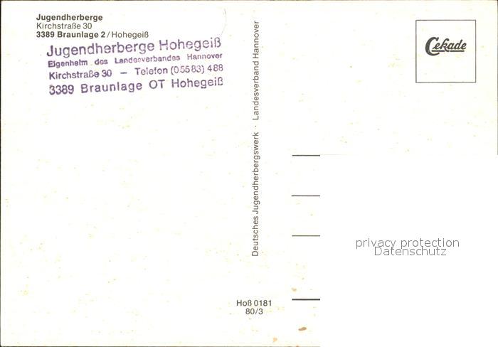 72053092 Hohegeiss Harz Jugendherberge postalisch nicht gelaufen Erhaltung siehe scans KatCode: 11110003153003