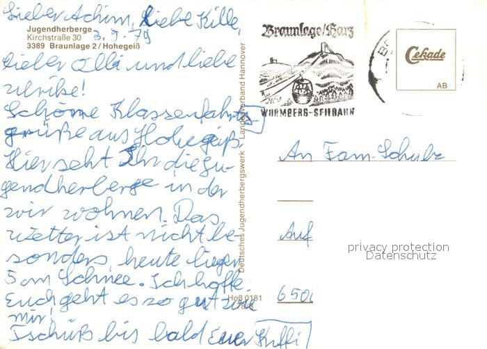 73686692 alte Postkarte Hohegeiss Harz Jugendherberge postalisch gelaufen Erhaltung siehe scans [FriedD77] KatCode: 11110003153003