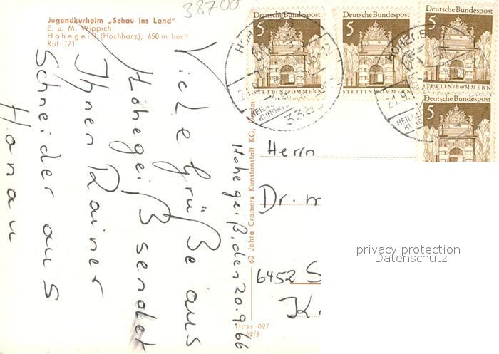 73090305 alte Postkarte Hohegeiss Harz Jugendkurheim Schau Ins Land postalisch gelaufen Erhaltung siehe scans [NatalD47] KatCode: 11110003153003