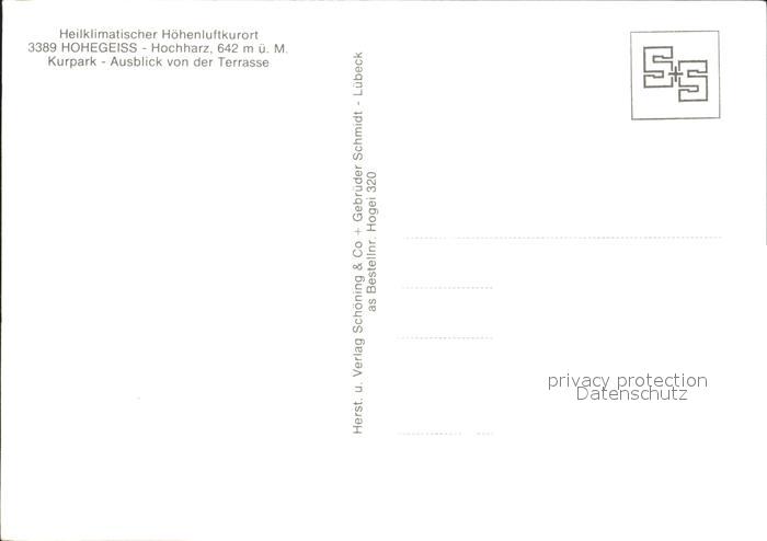 72092255 Hohegeiss Harz Kurpark Blick von der Terrasse postalisch nicht gelaufen Erhaltung siehe scans KatCode: 11110003153003