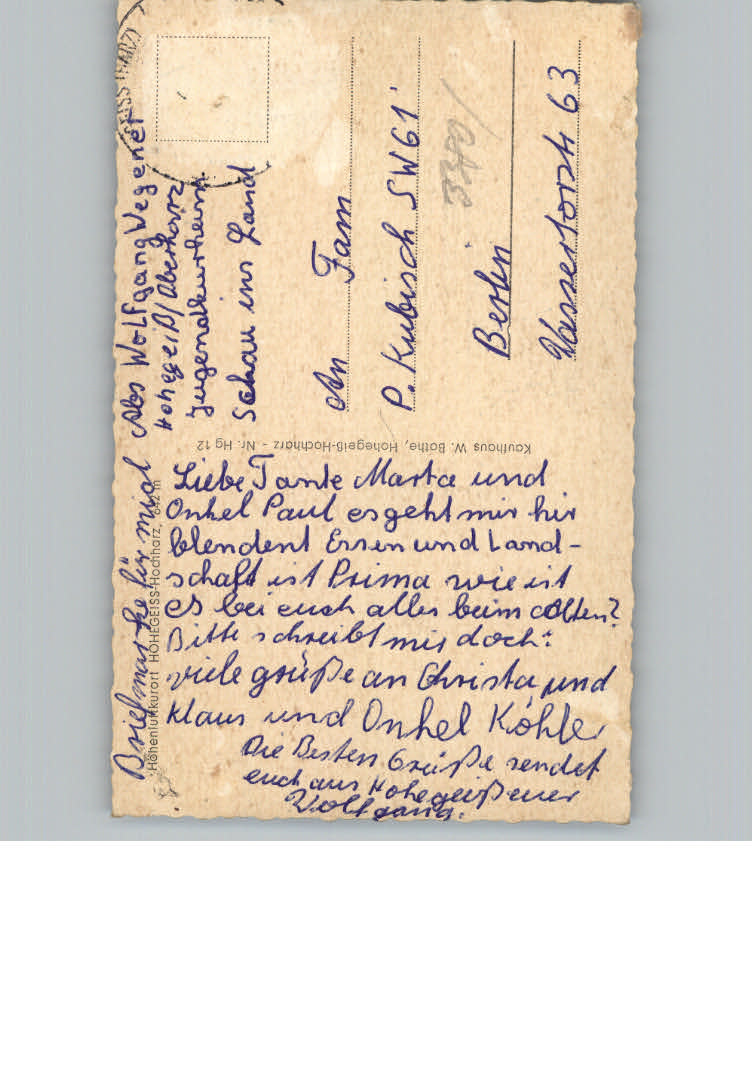 31167715 Hohegeiss Harz Post postalisch nicht gelaufen KatCode: 11110003153003