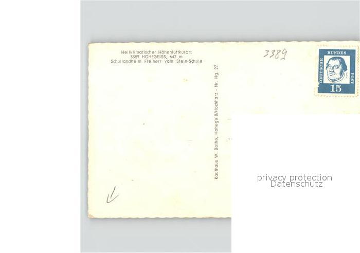 41619654 Hohegeiss Harz Schullandheim Freiherr vom Stein-Schule postalisch nicht gelaufen Erhaltung siehe scans KatCode: 11110003153003