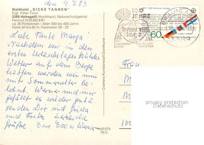 73726370 alte Postkarte Hohegeiss Harz Waldhotel Dicke Tannen Restaurant Landschaftspanorama postalisch gelaufen Erhaltung siehe scans [FriedD77] KatCode: 11110003153003
