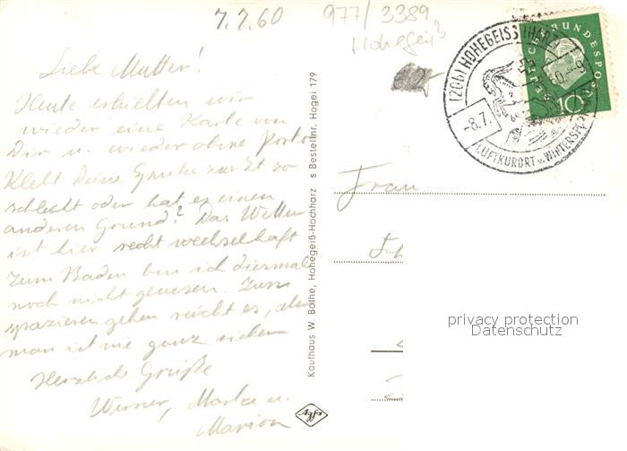 73163498 alte Postkarte Hohegeiss Harz Wolfsbachmuehle Waldschwimmbad Kunzenbachtal postalisch gelaufen Erhaltung siehe scans [WerneD78] KatCode: 11110003153003