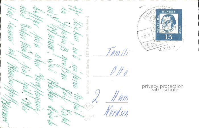 72316437 alte Postkarte Hohegeiss Harz Wolfsbachtal Fliegeraufnahme Schwimmbad postalisch gelaufen Erhaltung siehe scans KatCode: 11110003153003