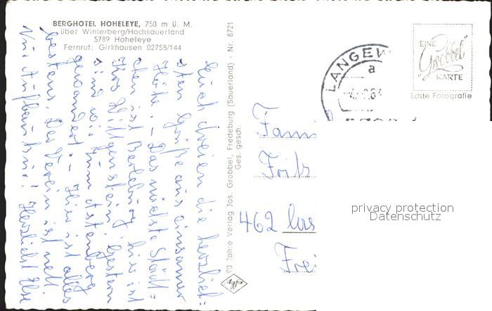 72058290 alte Postkarte Hoheleye Berghotel Hoheleye postalisch gelaufen Erhaltung siehe scans KatCode: 11110005958048