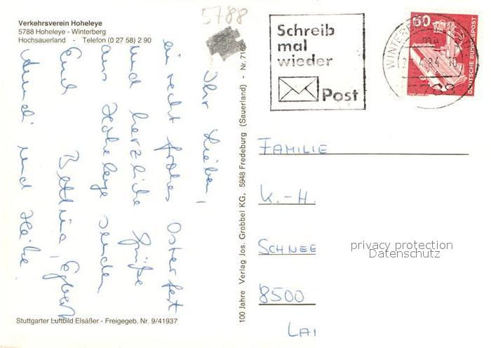 72943211 alte Postkarte Hoheleye Fliegeraufnahme postalisch gelaufen Erhaltung siehe scans [KathaD81] KatCode: 11110005958048