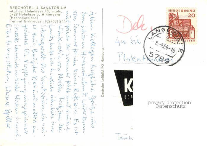 72882912 alte Postkarte Hoheleye Fliegeraufnahme Berghotel und Sanatorium postalisch gelaufen Erhaltung siehe scans [AndreD76] KatCode: 11110005958048