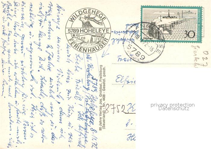 73688719 alte Postkarte Hoheleye Fliegeraufnahme postalisch gelaufen Erhaltung siehe scans [FriedD77] KatCode: 11110005958048