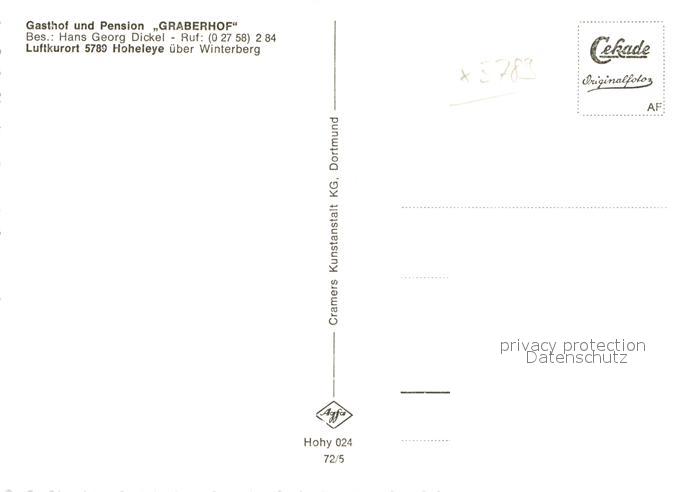 42911375 Hoheleye Gasthof Pension Graberhof postalisch nicht gelaufen Erhaltung siehe scans [WerneD78] KatCode: 11110005958048