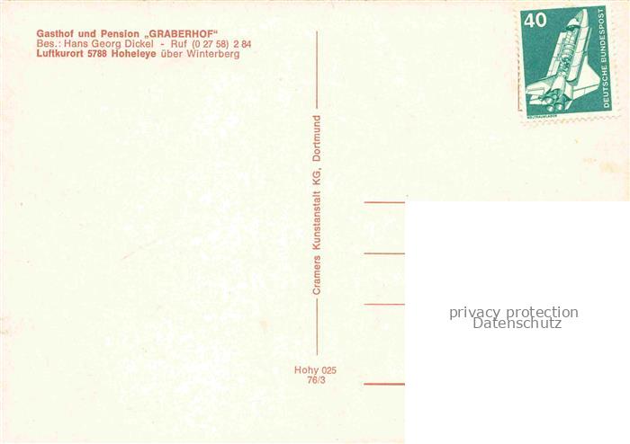 74043617 Hoheleye Gasthof Pension Graberhof Gastraum Luftaufnahme Kurort postalisch nicht gelaufen Erhaltung siehe scans [FriedD77] KatCode: 11110005958048