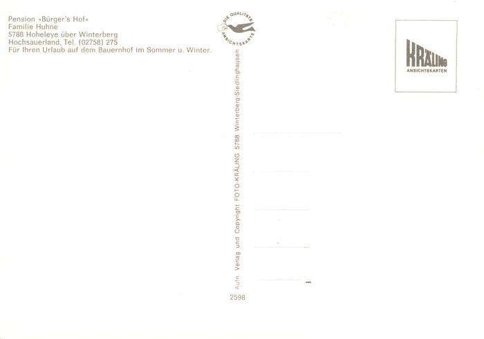 73942483 Hoheleye Pension Buergers Hof postalisch nicht gelaufen Erhaltung siehe scans [WerneD78] KatCode: 11110005958048