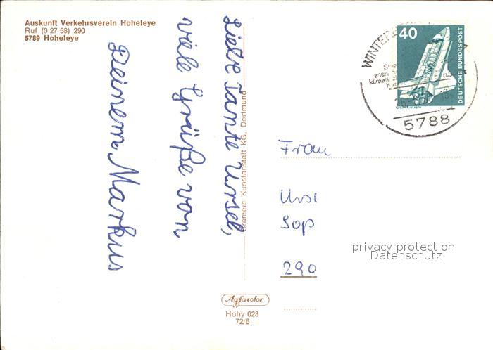 72597712 alte Postkarte Hoheleye Pensionen Dienst Pusch Huhne Graberhof Hoheleye postalisch gelaufen Erhaltung siehe scans [LiesaD40] KatCode: 11110005958048