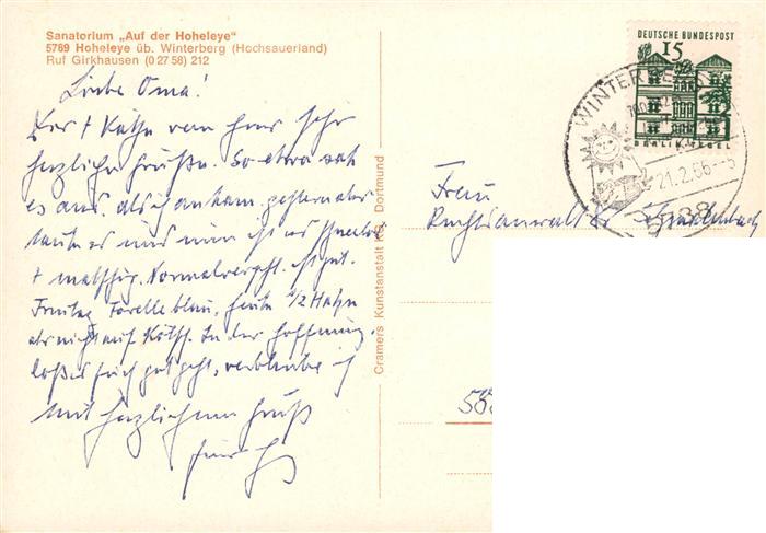 73942884 alte Postkarte Hoheleye Sanatorium Auf der Hoheleye postalisch gelaufen Erhaltung siehe scans [WerneD78] KatCode: 11110005958048