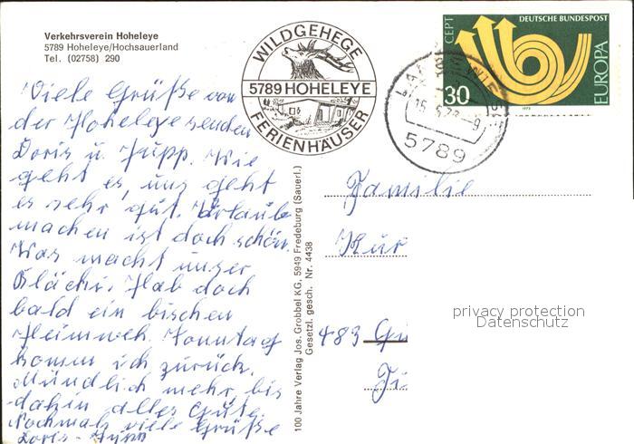 71951018 alte Postkarte Hoheleye Verkehrsverein Hoheleye postalisch gelaufen KatCode: 11110005958048