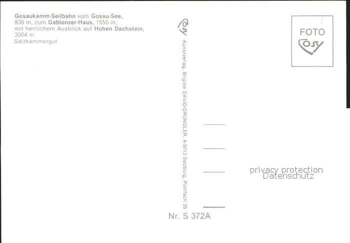 71930005 Hohen Dachstein Gosaukamm-Seilbahn Gosau-See Gablonzer-Haus postalisch nicht gelaufen Erhaltung siehe scans KatCode: 11390222061223