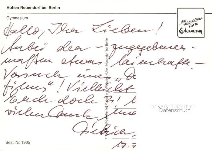 73030133 Hohen Neuendorf Gymnasium postalisch nicht gelaufen Erhaltung siehe scans [PaolaD17] KatCode: 11110012065144
