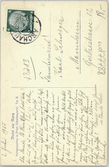 40236244 alte Postkarte Hohenaschau Burghotelgarten x 1935 postalisch gelaufen KatCode: