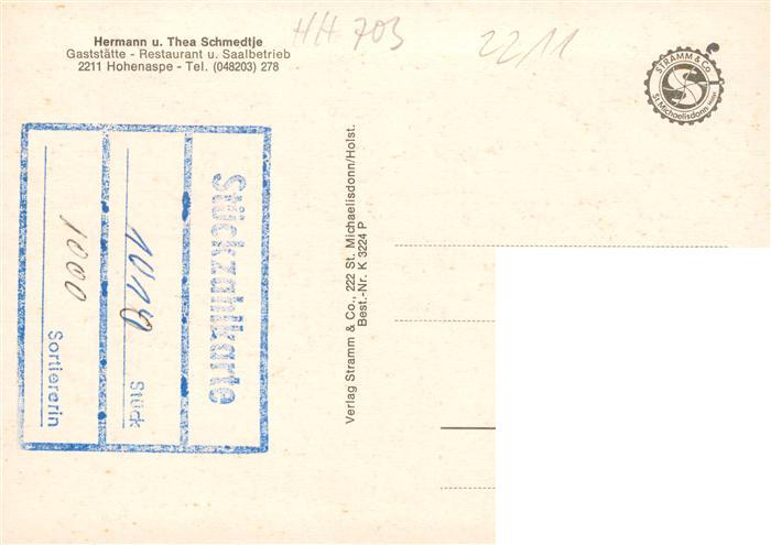 73878108 Hohenaspe Gaststaette Zur Linde Gastraeume Festsaal postalisch nicht gelaufen Erhaltung siehe scans [FriedD77] KatCode: 11110001061040