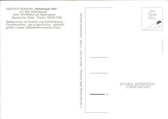 72315462 Hohenau Niederbayern Gasthaus Pension Hohenauer Hof postalisch nicht gelaufen Erhaltung siehe scans KatCode: 11110009272127