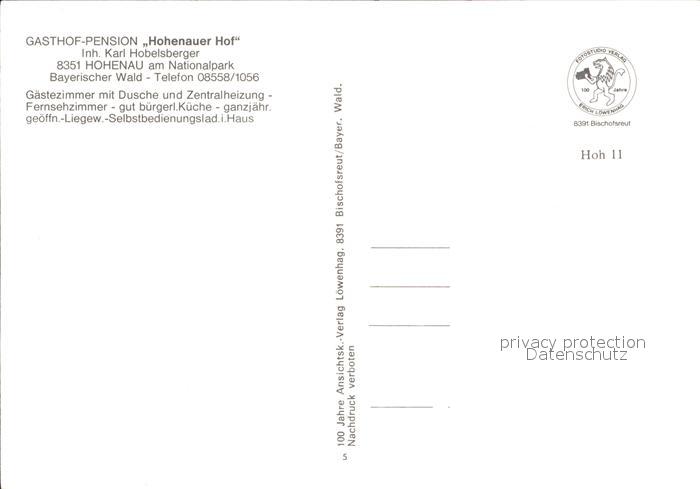 72103508 Hohenau Niederbayern Gasthaus Pension Hohensauer Hof postalisch nicht gelaufen Erhaltung siehe scans KatCode: 11110009272127