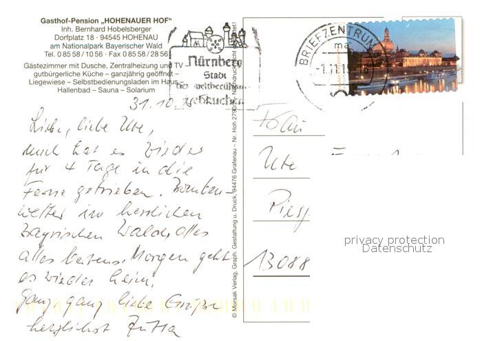 73669817 alte Postkarte Hohenau Niederbayern Panorama Nationalpark Bayerischer Wald Ortsmotiv Denkmal Badesee postalisch gelaufen Erhaltung siehe scans [FriedD77] KatCode: 11110009272127